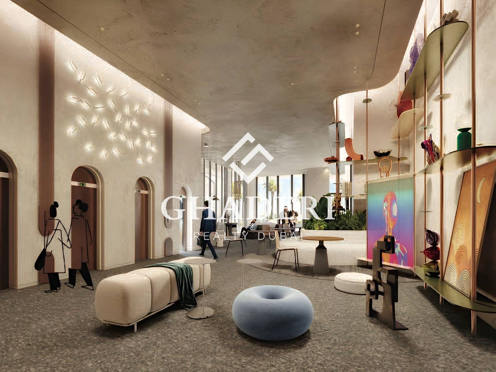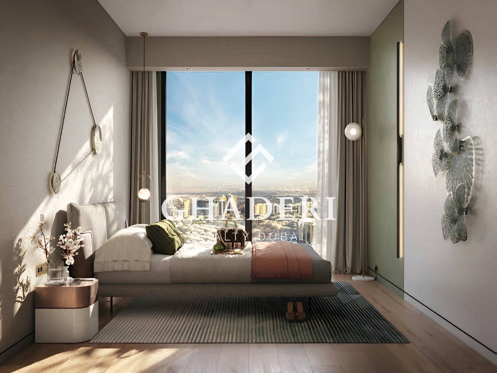 With 400 sq ft of thoughtfully designed space, this studio features floor-to-ceiling glass, built-in wardrobes, custom bathroom vanity, wooden-finish porcelain tiles, and a sleek kitchen with built-in appliances. Neutral tones and warm finishes create a welcoming, sophisticated atmosphere perfect for end-users and investors alike.