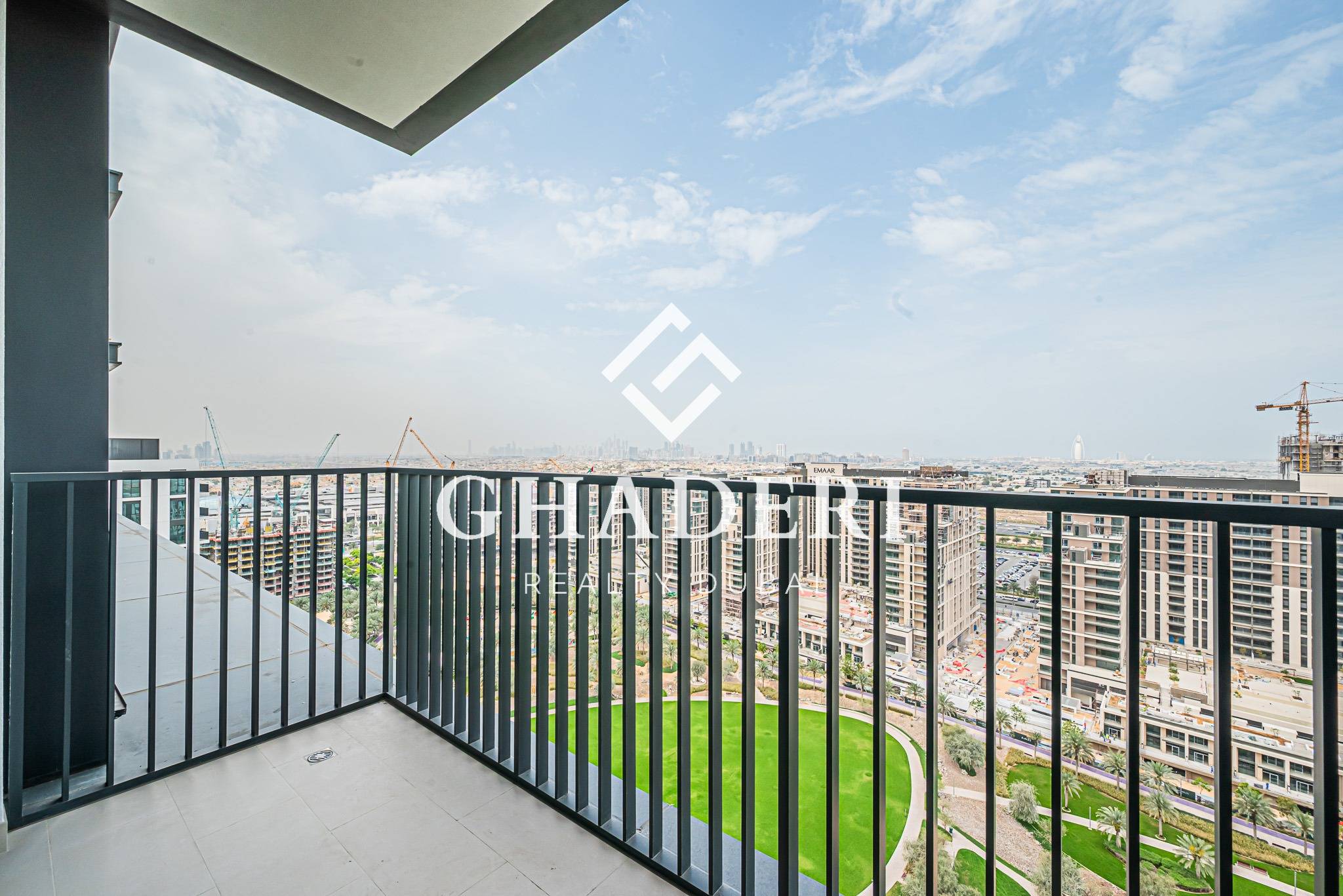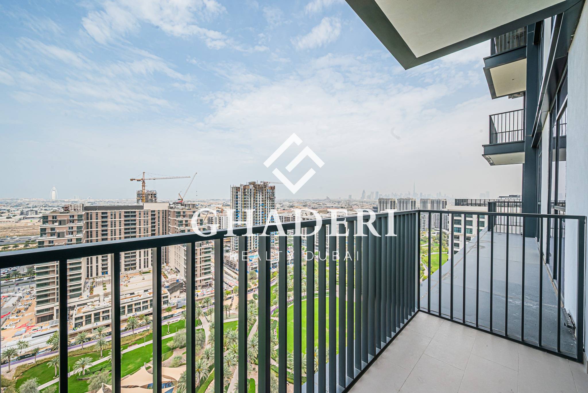 – Balcony with Park and Dubai Skyline View