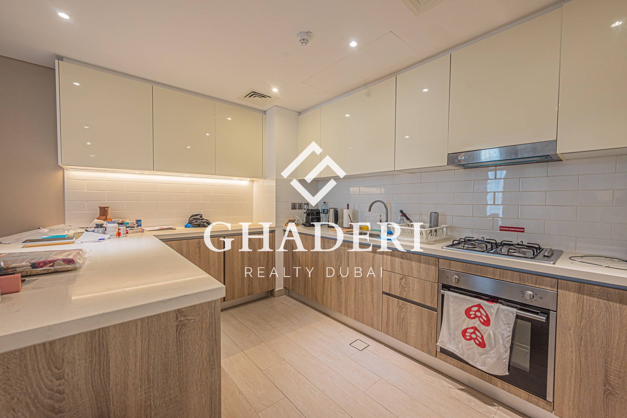 – Open-plan kitchen with modern finishes