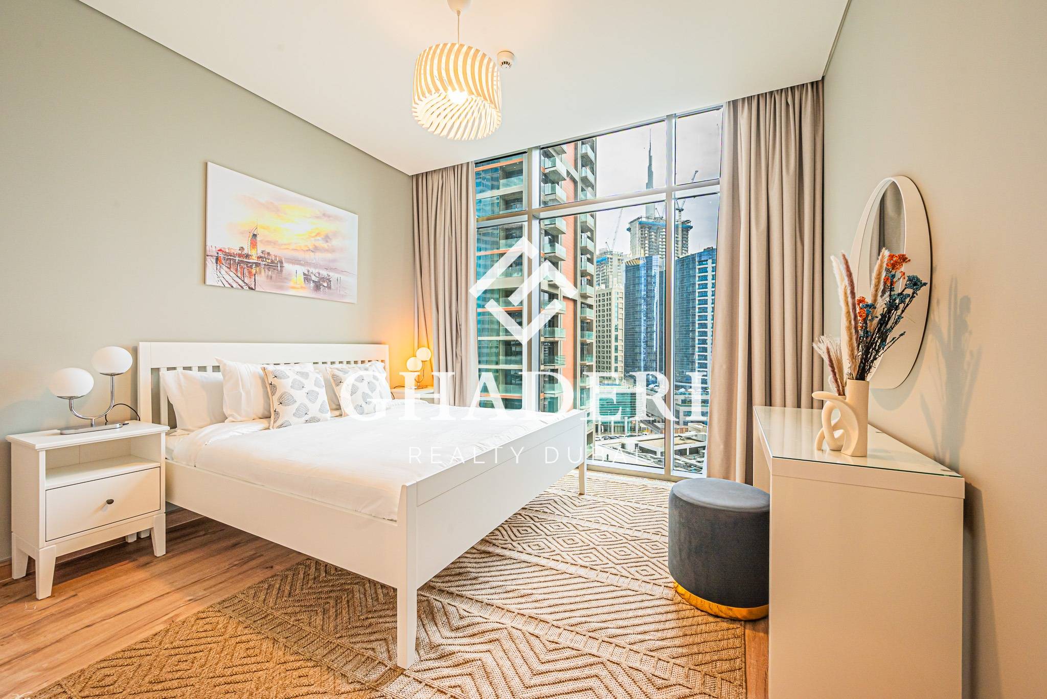 Ghaderi Realty is delighted to showcase this elegant two-bedroom apartment in the prestigious Peninsula 1, located in the heart of Business Bay, Dubai. Designed for contemporary urban living, this stunning residence offers panoramic views of the Burj Khalifa and Dubai Canal, combining sophistication, comfort, and convenience in one exceptional address.