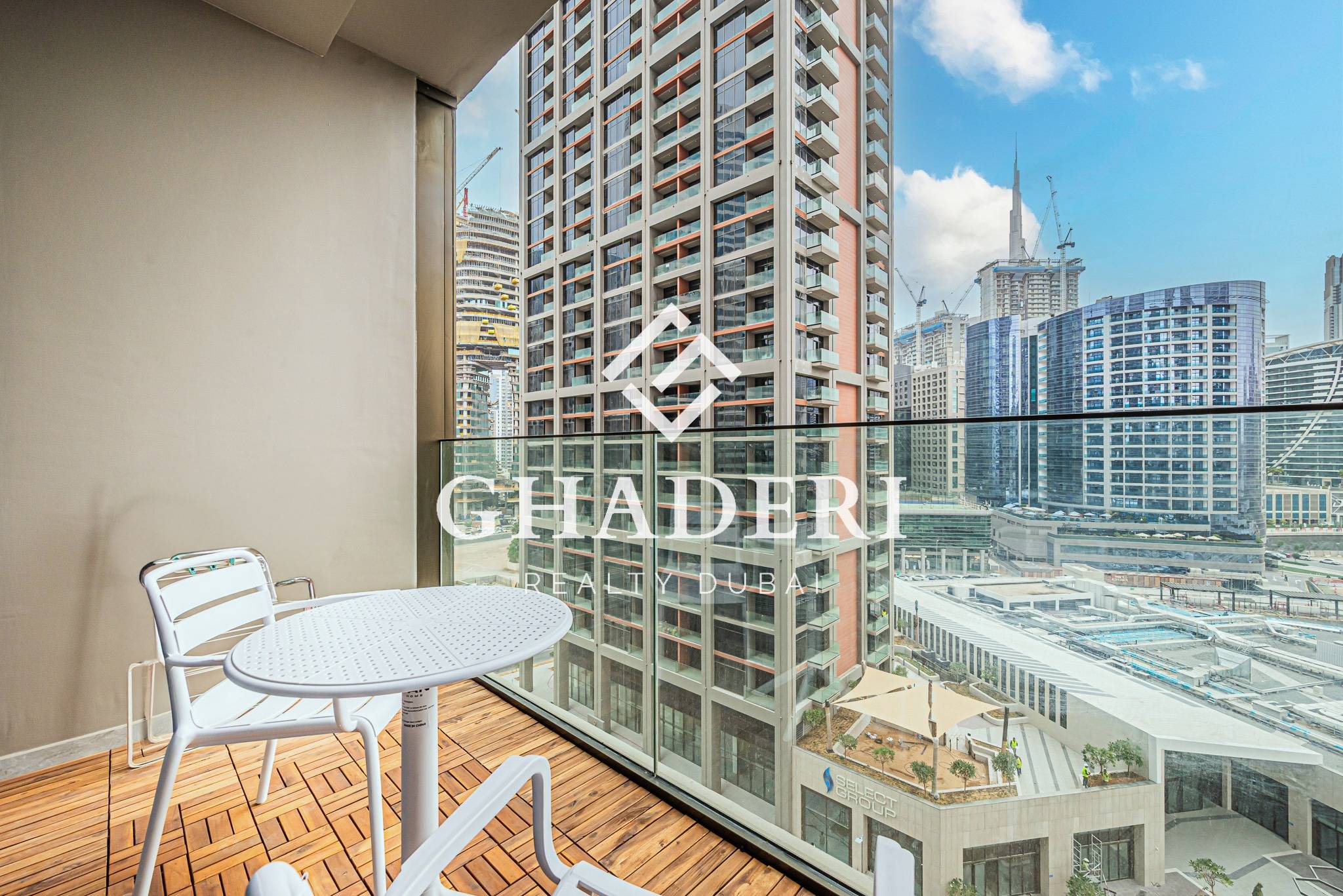– Private balcony with breathtaking Burj Khalifa and canal views