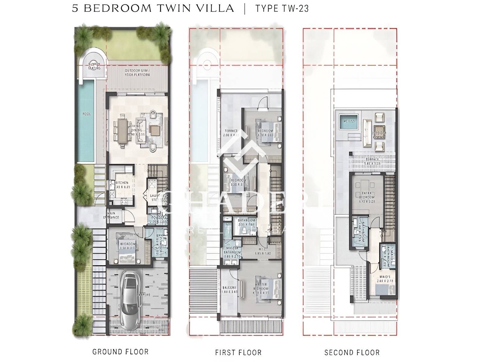 Ghaderi Realty is delighted to present this stunning 5-bedroom twin-villa in Park Greens 2, Damac Hills 2. This semi-detached, single-row residence promises the ultimate family lifestyle.