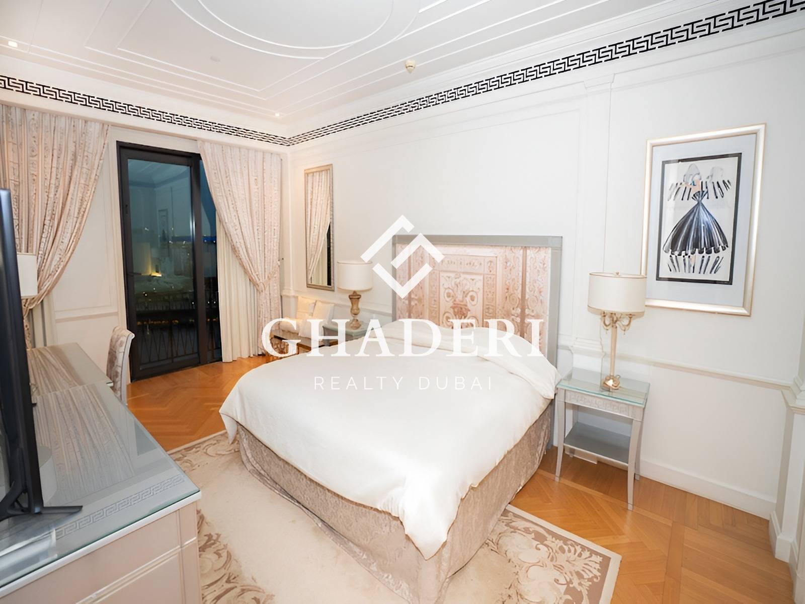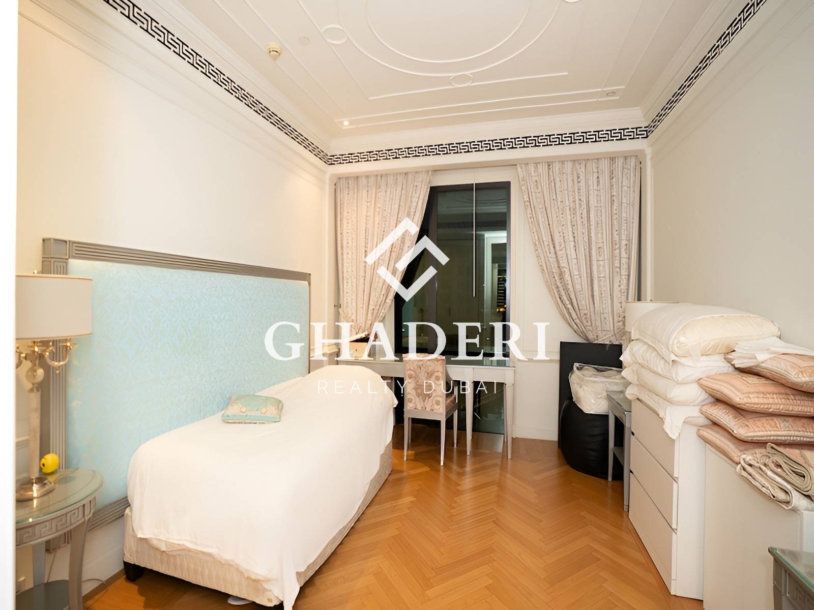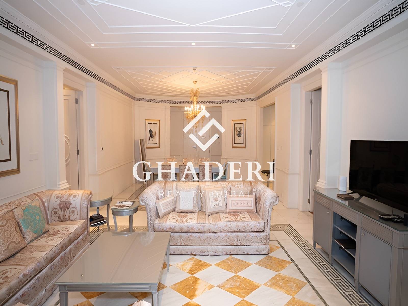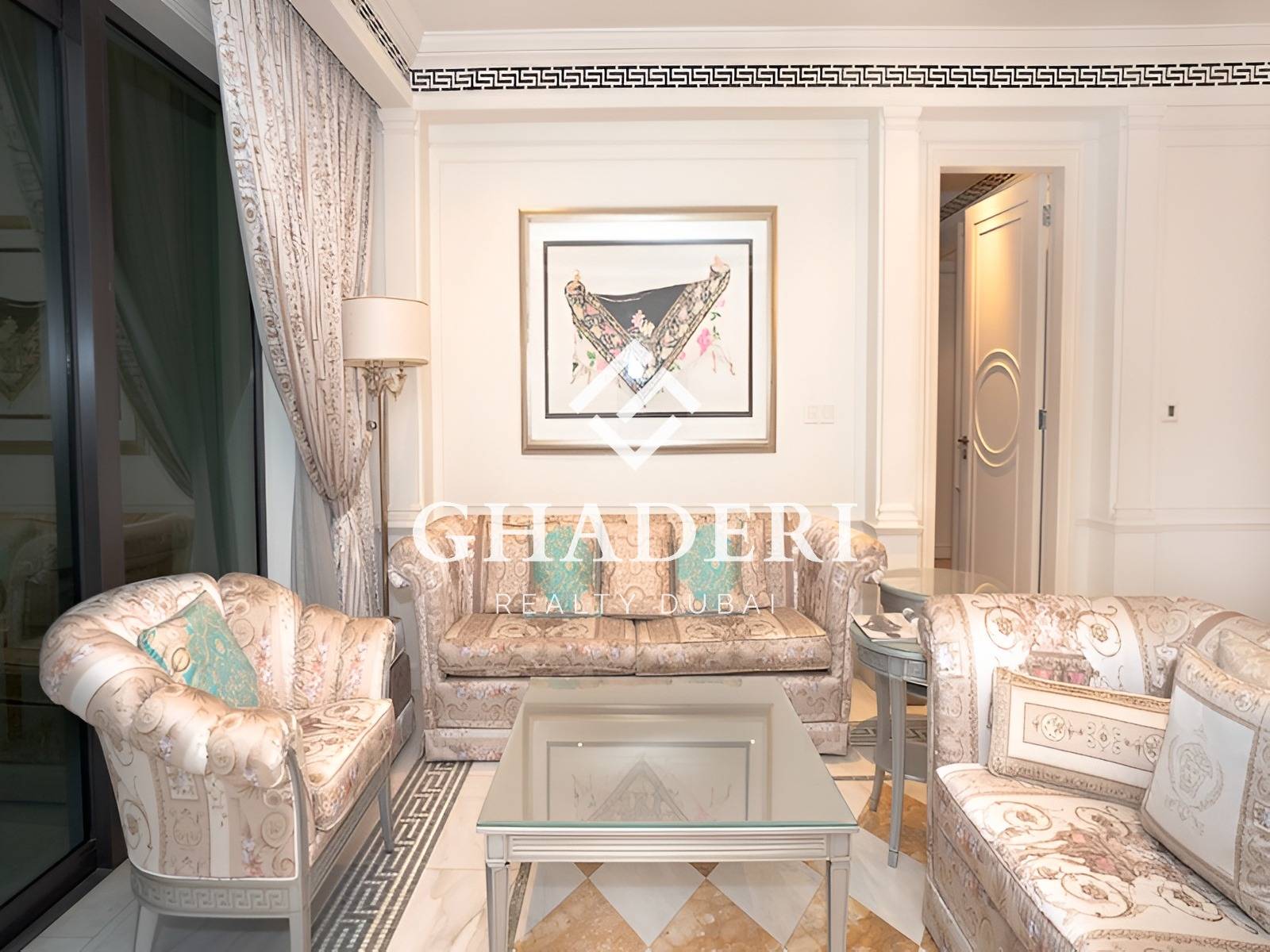Ghaderi Realty introduces this stunning fully furnished two-bedroom apartment at the iconic Palazzo Versace Dubai, one of the city’s most prestigious waterfront addresses overlooking Dubai Creek.